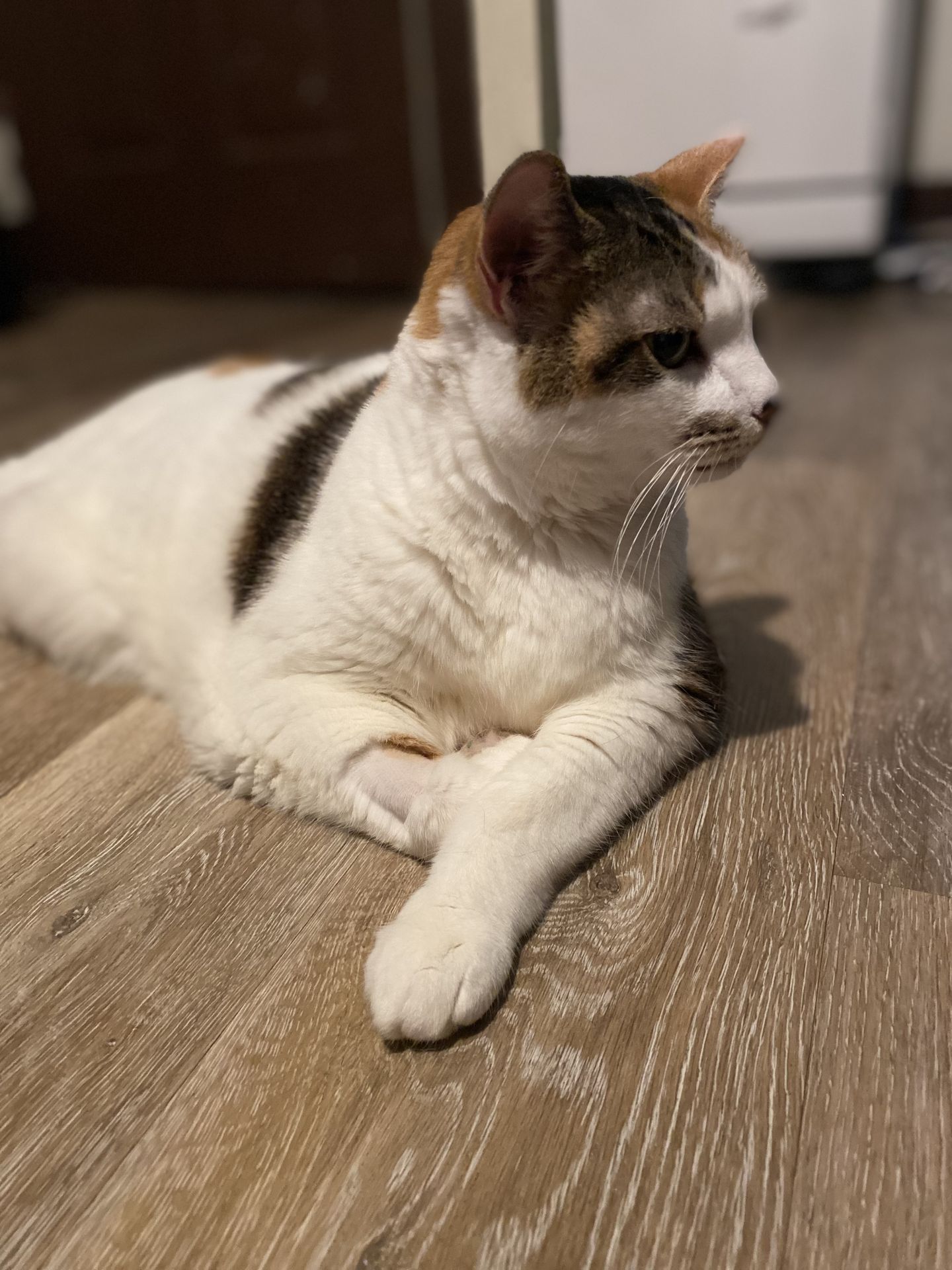since beans is a calico kittie, her paw pads also come in calico! not only does she have lil pink toe beans, she also has a few black toes and even has some tan markings as well!